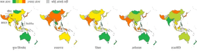 एशिया में फिलीपींस सबसे ज़्यादा बराबरी वाला देश है. स्वास्थ्य और शिक्षा के क्षेत्र में वो इस अंतर को लगभग पाटने के क़रीब हैं. विश्व आर्थिक मंच का कहना है कि वहां महिलाओं की आर्थिक भागीदारी का स्तर भी ऊंचा है. इस मामले में चीन 69वें पायदान पर है जबकि भारत का नंबर 101 है. भारत की कम रैंकिंग का कारण उसे शिक्षा, स्वास्थ्य और अर्थशास्त्र पर विश्व आर्थिक मंच की ओर से मिले कम अंक हैं.