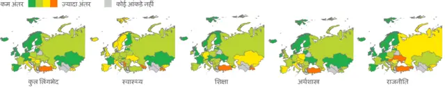 उत्तर यूरोपीय देशों का प्रदर्शन अन्य देशों के मुकाबले आम तौर पर बेहतर है. विश्व आर्थिक मंच इसका श्रेय आंशिक रूप से उन नीतियों को देता है जो लोगों को घर और दफ्तर की मांगों के बीच संतुलन बनाने में मदद करती हैं. दक्षिणी यूरोप में शिक्षा के क्षेत्र में लिंग भेद कई वर्ष पहले ही उलट दिया गया था. फिर भी, वहां कामकाजी लोगों में महिलाओं का स्तर कम ही है.