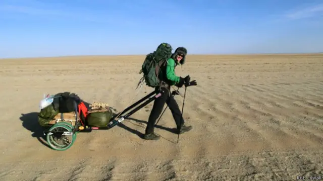 इस रोमांचक यात्रा को ब्रितानी नागरिक रॉब लिलवॉल ने पूरा किया है. उन्होंने मंगोलिया में गोबी रेगिस्तान के रास्ते हॉंगकॉंग तक 5,000 किलोमीटर का सफ़र पैदल तय किया.
