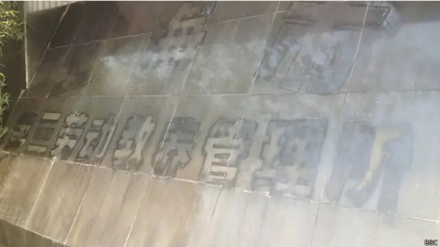 जैसा कि तस्वीरों से पता चलता है कि हालांकि साइन बोर्ड से अक्षरों को हटा लिया गया है, लेकिन आप अभी भी संस्थानों के नाम पढ़ सकते हैं.