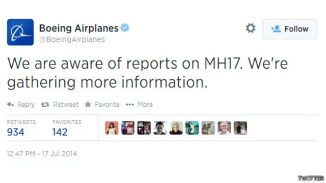 दुर्घटना की ख़बर आते ही ट्विटर पर हैशटैग #MH17, #PrayForMH17 और Malaysian Airlines ट्रेंड करने लगे.