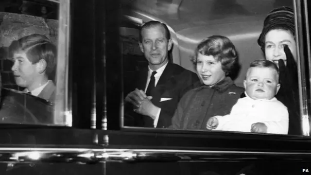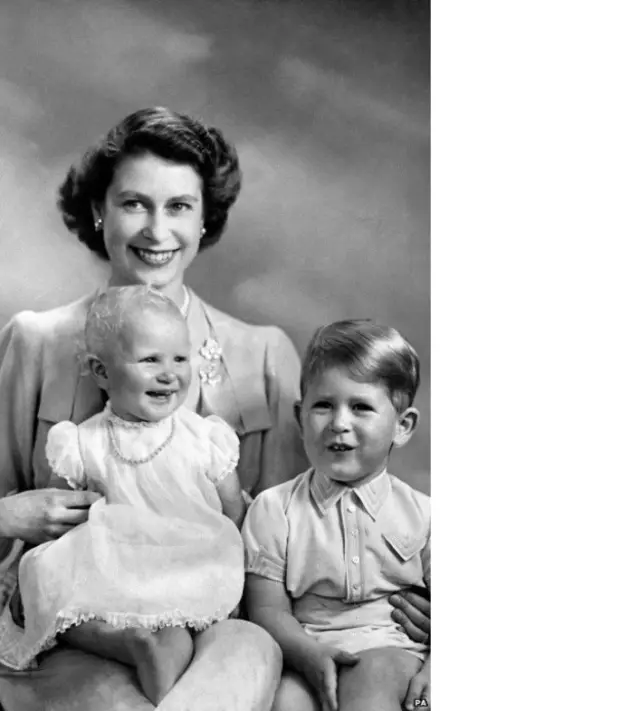 साल 1951 में ली गई इस तस्वीर में प्रिंसेज़ एनी तत्कालीन प्रिंसेज़ एलिज़ाबेथ की गोद में हैं. साथ में हैं ड्यूक ऑफ़ एडिनबर्ग जो प्रिंस चार्ल्स को पकड़े हुए हैं.