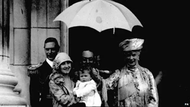 ड्यूक एंड डचेज़ ऑफ़ यॉर्क 1927 में ली गई इस तस्वीर में किंग जॉर्ज पंचम और महारानी मेरी के साथ दिख रहे हैं. साथ में हैं बाद में महारानी बनने वाली एलिज़ाबेथ द्वितीय.