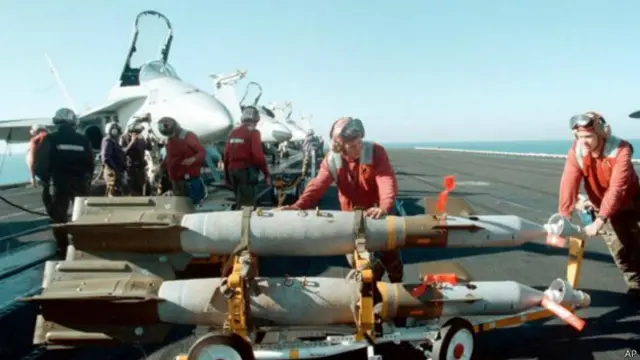 पेंटागन के मुताबिक दो एफए-18 विमानों ने पाँच सौ पाउंड वजनी लेज़र संचालित बमों से इरबिल के नज़दीक इस्लामी चरमपंथियों के भारी हथियारों को निशाना बनाया.