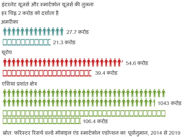 रिसर्च संस्था फोरेस्टर का अनुमान है कि चीन में 2017 तक स्मार्टफ़ोन इस्तेमाल करने वालों की संख्या बढ़ कर 74 करोड़ हो जाएगी.