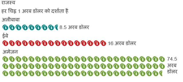 इन सब शॉपिंग वेबसाइटों का राजस्व प्रत्येक ऑनलाइन सेल पर लगने वाली फ़ीस और परसेंटेज आता है. इस मामले में अलीबाबा दोनों बड़ी ई-कॉमर्स कंपनियों से पीछे है.