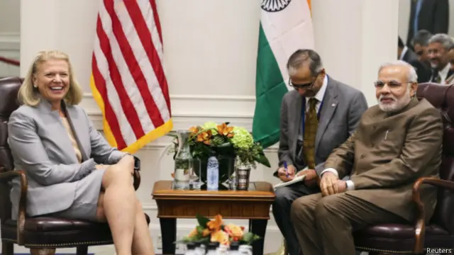 आईबीएम की सीईओ गिन्नी रोमेटी लगता है पीएम मोदी से मिल कर काफी खुश हैं.