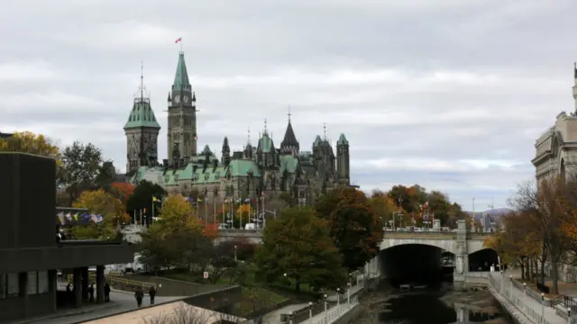 एक पुल से कनाडा की संसद और उस इलाके का नज़ारा जहां फायरिंग हुई थी.