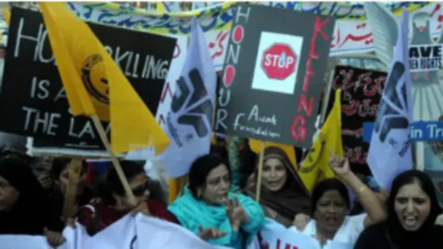 पाकिस्तान में हू्मन राइट्स कमीशन के आँकड़ों के मुताबिक 2013 में वहाँ 869 महिलाओं की हत्या ऑनर किलिंग के नाम पर हुई.