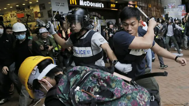 हांगकांग में सरकारी मुख्यालय के पास लोकतंत्र समर्थकों और पुलिस के बीच संघर्ष की ख़बर है.