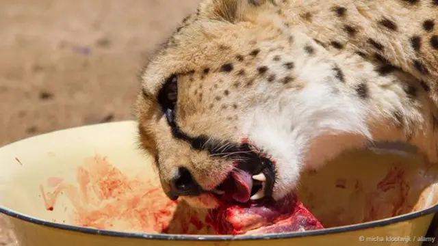 दुनिया भर के वन्य जीव केंद्रों से एक ऑनलाइन सर्वे के ज़रिए चीते के खान-पान के बारे में पूछा गया था. इसके जवाब में मिले आंकड़ों के मुताबिक 37 फ़ीसदी चीते कच्चा मांस खाते हैं जबकि 20 फ़ीसदी चीतों को व्यवसायिक तौर पर तैयार मांस खाने को मिलता है जबकि आठ फ़ीसदी चीतों को कंकाल खाने को मिलता है.
