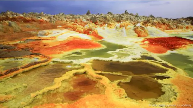 उत्तर-पूर्व इथियोपिया के डालोल ज्वालामुखी के आसपास का दृश्य बेहद शानदार है. सफ़ेद, गुलाबी, लाल, पीला, हरा, स्लेटी और काले साल्ट से भरा इलाका.