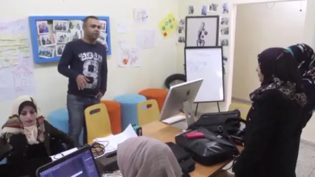 वो बताती हैं कि ग़ज़ा स्काई गीक्स (जीएसजी) ने बिजली, कंप्यूटर और इंटरनेट की सुविधा दी, जिसके चलते उनका काम चल निकला है.