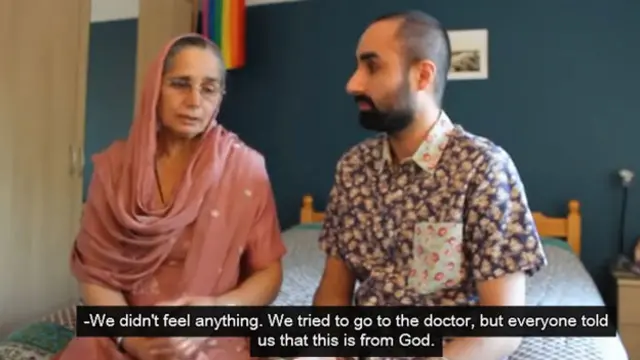 वीडियो में मनजिंदर की माँ वो पल भी साझा करती हैं, जब उन्हें बेटे के समलैंगिक होने का पता चला. वे कहती हैं, "जब पहले कुछ महसूस नहीं हुआ. बाद में मैं अपने बेटे को 'ठीक कराने' के लिए गुरुद्वारे लेकर गई थीं."