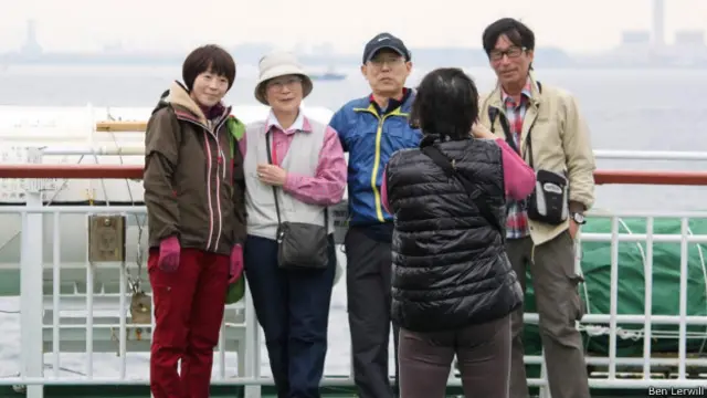 जब हमारा समुद्री जहाज़ टोक्यो बे से गुजरने के बाद शहर के शोर शराबे और चकाचौंध से दूर निकला तो सुबह के 11 बजे हैं और कुछ लोग सुबह ही डेक पर बैठ कर बीयर पी रहे थे.