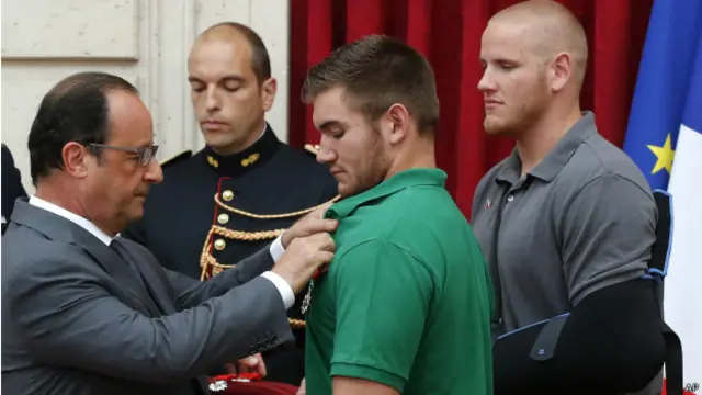 फ्रांस के राष्ट्रपति फ्रांस्वा ओलांद ने एक तेज़ रफ्तार ट्रेन में हुए संदिग्ध चरमपंथी हमले को नाकाम करने वालों को देश का सर्वोच्च सम्मान दिया है.