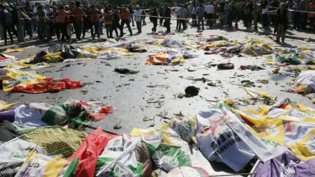 समझा जाता है कि कुर्दिश संगठन पीकेके के ख़िलाफ़ हो रही सरकारी कार्रवाई ख़त्म करने की मांग को लेकर हो रहे शांति मार्च को निशाना बनाया गया था.
