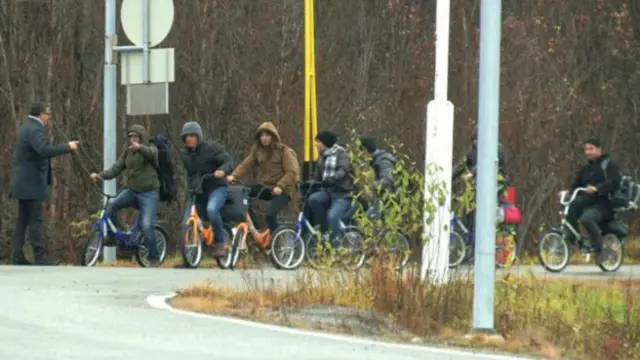 सैकड़ों प्रवासी साइकिल पर सवार होकर नार्वे की सीमा में प्रवेश कर रहे हैं.