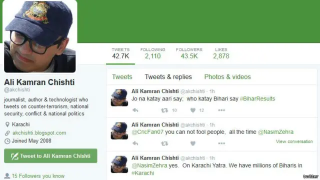बिहार चुनावों के परिणामों पर पाकिस्तान में भले ही पटाखे न छूटे हों लेकिन पाकिस्तान में ट्विटर पर टॉप ट्रेंड बिहार है जी हां #Bihar