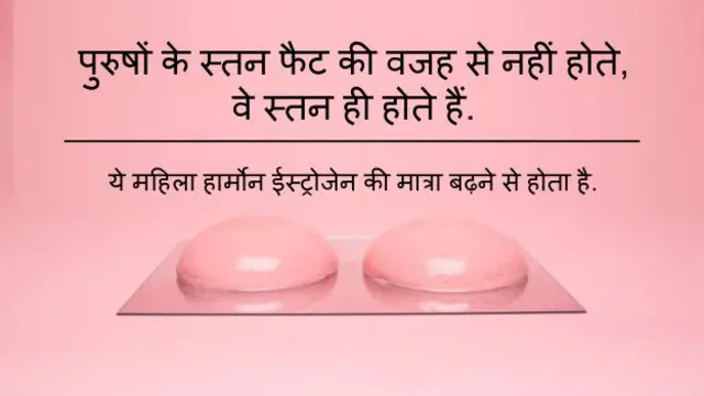 4. पुरुषों का स्तन भी कई बार बढ़ जाता है. माना जाता है कि ज्यादा बीयर पीने से ऐसा होता है. लेकिन ये स्तन में कोशिकाओं के बढ़ने से होता है. मोटे और ज़्यादा वज़नी लोगों में ऐसा होता है कि क्योंकि वसा से फ़ीमेल हार्मोन इस्ट्रोजन उत्पादित होता है जिससे स्तन बढ़ता है. (<link type="page"><caption> स्रोत- यूके नेशनल हेल्थ सर्विस</caption><url href="http://www.nhs.uk/chq/Pages/885.aspx?CategoryID=61" platform="highweb"/></link>)