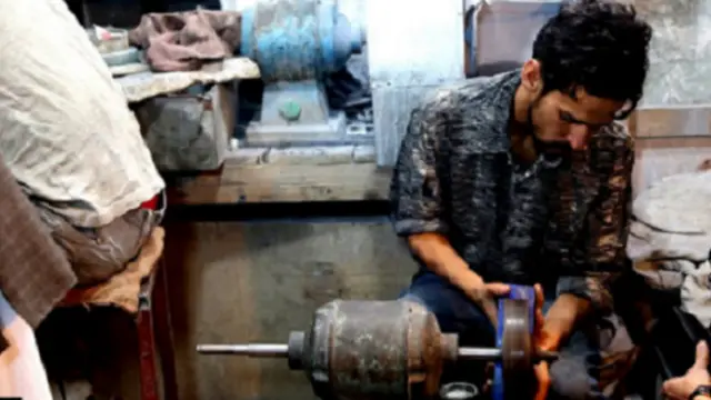 लैपीस लैज़ुली (क़ीमती पत्थर) की एक दुकान में जहां कभी दस कामगारों की जगह होती थी वहीं अब उसकी जगह चार कामगारों को रखा जाता है.