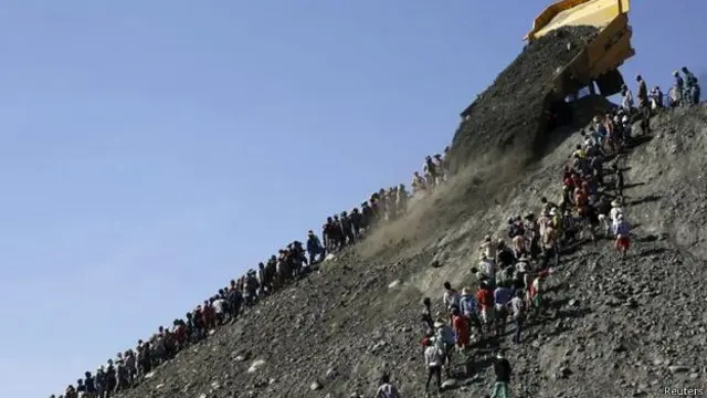 जेड की खानों से बड़ी मात्रा में निकले चट्टानों के कचरे का ढेर लग जाता है. इन ढेरों पर चढ़कर मज़दूर उसमें से जेड पत्थर तलाशते हैं.
