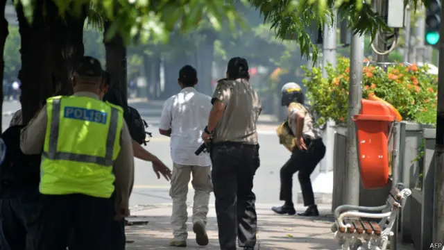 राष्ट्रीय पुलिस के डिप्टी चीफ़ कमिश्नर गेन बुडी गुनावान ने कहा है कि दो हमलावर एक थियेटर के सामने पुलिस की गोलीबारी में मारे गए जबकि अन्य दो ने स्टारबक्स कैफ़े के सामने एक पुलिस पोस्ट पर ख़ुद को उड़ा दिया.