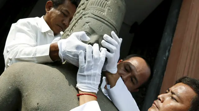 कंबोडिया में हुए एक विशेष समारोह में 17वीं सदी की एक मूर्ति के सिर को फिर से जोड़ा गया है.
