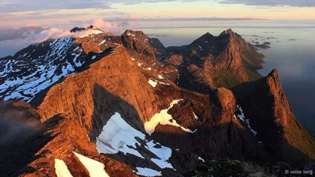 रेडार बर्ग की इस तस्वीर में पहाड़ पर जमी बर्फ़ और आसमान सम्मोहक दृश्य पेश कर रहे हैं.