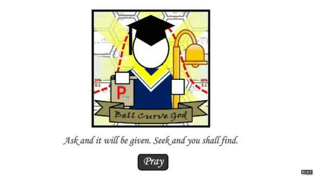 नेशनल यूनिवर्सिटी ने तो अपने छात्र-छात्राओं के लिए बेल कर्व गॉड की वेबसाइट, फ़ेसबुक और ट्विटर अकाउंट भी बना रखा है ताकि बच्चे ऑनलाइन प्रार्थना कर सकें.
