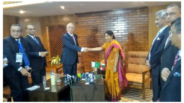 नेपाल की राजधानी काठमांडू में भारतीय विदेश मंत्री सुषमा स्वराज और पाकिस्तानी प्रधानमंत्री के विदेश मामलों के सलाहकार सरताज अज़ीज़ ने एक साझा प्रेस कांफ्रेस में इस बात की घोषणा की है.