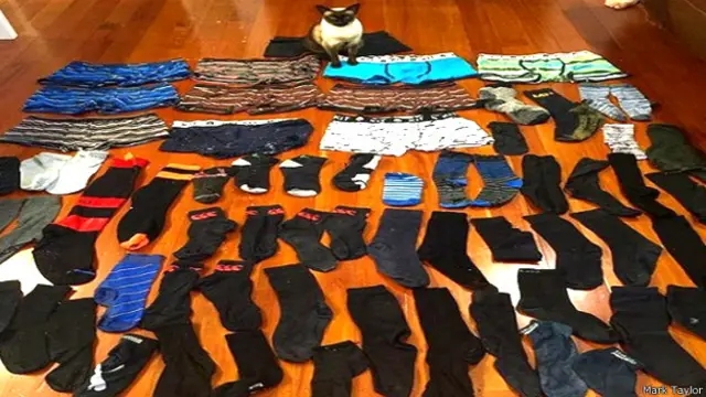 छह साल की टोंकनी नस्ल की बिल्ली 'ब्रिगिट' ने दो महीने में हेमिल्टन सिटी से ग्यारह जोड़े अंडरवियर और पचास के ज़्यादा जुराब जमा कर लिए थे.