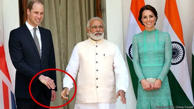 प्रधानमंत्री नरेंद्र मोदी की ब्रिटेन के राजकुमार प्रिंस विलियम के साथ हाथ मिलाने की एक तस्वीर से सोशल मीडिया पर भारी हलचल है.