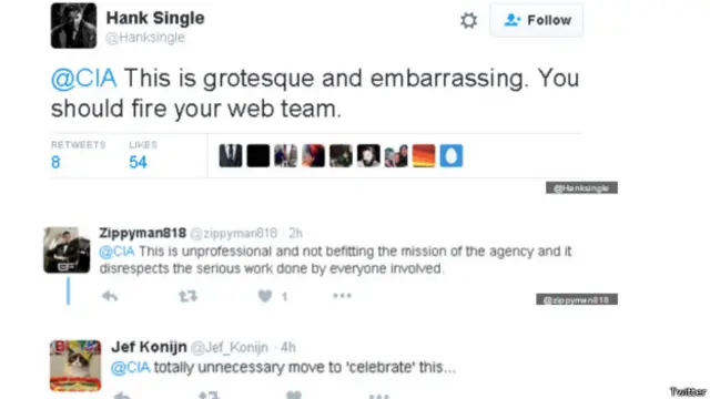 सीआईए के इस ट्वीट पर लोगों की मिली-जुली प्रतिक्रिया आई है. एक ट्विटर यूज़र ने इस क़दम को "अजीब और शर्मनाक" बताया है.