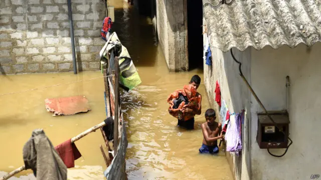 कोलंबो के अंदरूनी इलाक़ों में घर पानी में डूब गए हैं.