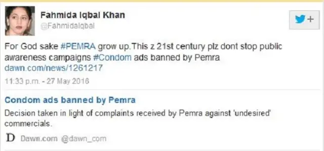 इमरान सईद ख़ान ने ट्वीट किया, “प्रिय पेमरा, परिवार नियोजन विज्ञापनों को बैन मत करो. इन दिनों कुछ अवांछित वयस्क गर्भनिरोधकों की जानकारी नहीं होने के कारण पैदा हुए.”