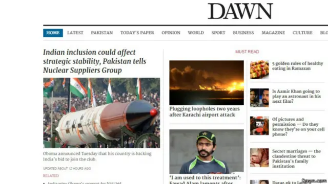 पाकिस्तानी अख़बार ‘डॉन’ ने अपने संपादकीय में लिखा है कि एक तरफ़ अमरीका ने साफ़ किया है कि वो एनएसजी में केवल भारत को सदस्यता दिलाने का इच्छुक है और वैश्विक परमाणु व्यवस्था में इस “असमान व्यवहार” का पाकिस्तान पर पड़ने वाले असर को नकारा जा रहा है.