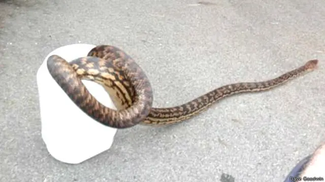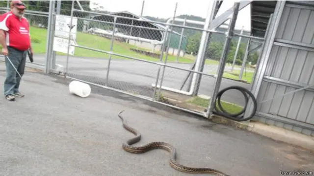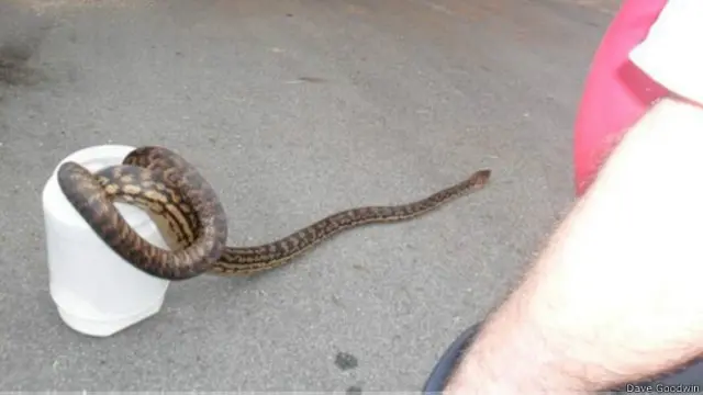 गुडविन ने बीबीसी को बताया कि टब में डालने से पहले 40 किलो का ये सांप उनकी बांह तोड़ने के लिए जकड़ रहा था.