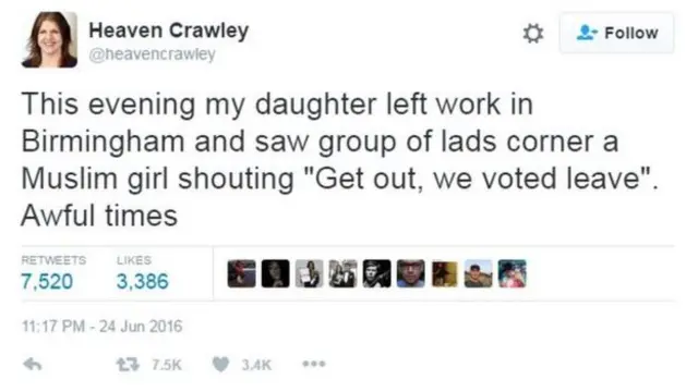 ब्रिटेन में यूरोपीय संघ से अलग होने को लेकर हुए जनमत संग्रह के बाद सोशल मीडिया पर नस्लवादी टिप्पणियों में तेज़ी देखी जा रही है.