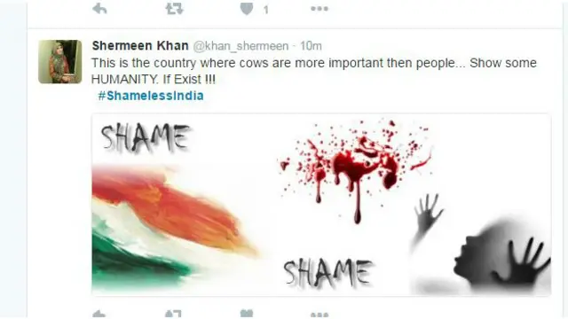 एक अन्य यूजर @khan_shermeen ने ट्वीट किया है, "भारत ऐसा देश है जहां आदमी से ज़्यादा महत्वपूर्ण गाय है. कुछ तो मानवता दिखाइए, अगर है तो."