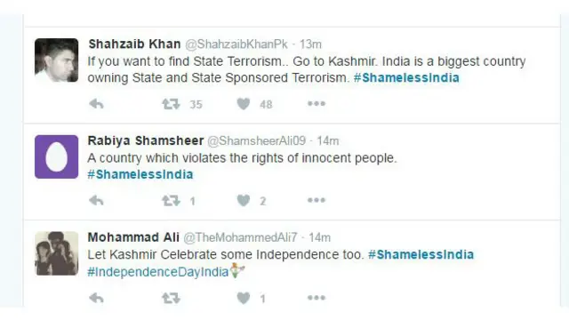 वहीं @abuzarllyas ने ट्वीट किया, "भारत स्वाधीनता दिवस मना रहा है जबकि पूरा कश्मीर क़ैदखाना बना हुआ है. भारतीयों द्वारा कश्मीर में अब तक 60 लोग मारे गए हैं."