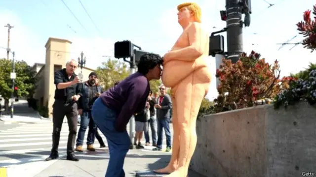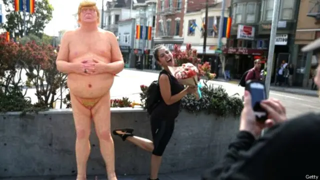 न्यूयॉर्क, लॉस एंजिल्स, सिएटल, सेन फ्रांसिस्को और क्लीवलैंड में जगह-जगह लगी ट्रंप की आदमकद और निर्वस्त्र प्रतिमाओं को देखने के लिए लोगों की भीड़ लग गई.