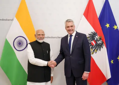 रूस के दौरे के बाद ऑस्ट्रिया पहुंचे नरेंद्र मोदी ने बुधवार को भारतीय समुदाय को संबोधित करते हुए भारत की अर्थव्यवस्था, राजनीति, नीतियों और ऑस्ट्रिया और भारत के बीच ऐतिहासिक संबंधों का ज़िक्र किया.