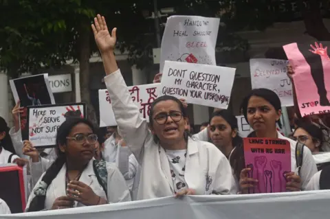 अस्पताल में रेप और हत्या की घटना के ख़िलाफ़ विरोध प्रदर्शन कर रहे हैं.