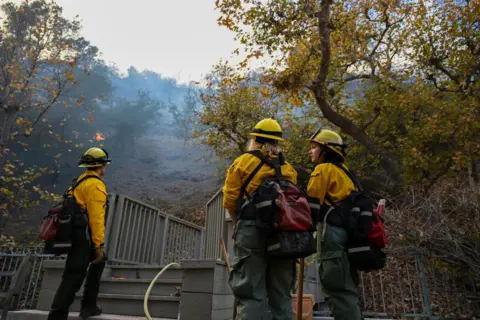 इमेज कैप्शन, लॉस एंजेलिस में लगी आग पर फ़ायर फ़ाइटर्स काबू पाने का प्रयास लगातार कर रहे हैं
