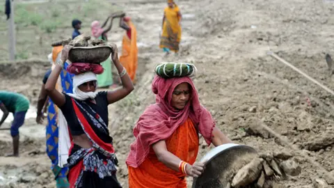 इमेज कैप्शन, प्रतीकात्मक तस्वीर केंद्रीय बजट में ग्रामीण रोज़गार गारंटी कार्यक्रम (मनरेगा) के लिए 73,000 करोड़ रुपये का आवंटन हुआ है. ये मौजूदा वित्त वर्ष के लिए संशोधित अनुमान से 25.51 फ़ीसदी कम है.