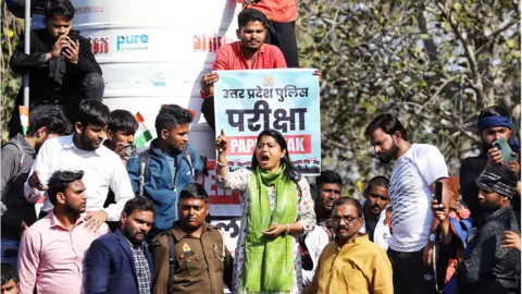 उत्तर प्रदेश में सिपाही भर्ती परीक्षा को रद्द करने के उत्तर प्रदेश के मुख्यमंत्री योगी आदित्यनाथ के फ़ैसले के बाद लखनऊ में परीक्षार्थियों ने जश्न मनाया.