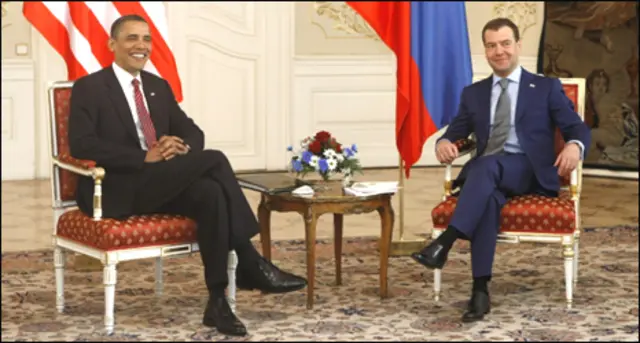 अमरीका के राष्ट्रपति बराक ओबामा और रूस के राष्ट्रपति दिमित्रि मेदवेदेव ने प्राग में परमाणु हथियारों में कटौती से संबंधित ऐतिहासिक संधि पर हस्ताक्षर कर दिए हैं. दोनों ने एक साथ ही हस्ताक्षर किए.