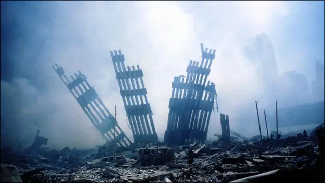 इन गिरती मंज़िलों ने नीचे की मंज़िलों पर भारी दबाव बनाया और फिर ये इमारत इतना भार सहन नहीं कर पाई. गिरती इमारत के बीच नीचे के मंज़िलों की खिड़कियों से भारी मात्रा में मलबे निकलने लगे.