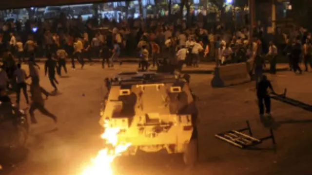 टीवी पर दिखाई तस्वीरों के मुताबिक प्रदर्शनकारियों ने सैनिकों पर पेट्रोल बम फ़ेंके और सरकारी टेलीवीज़न की इमारत के बाहर सेना के वाहन जल रहे थे.